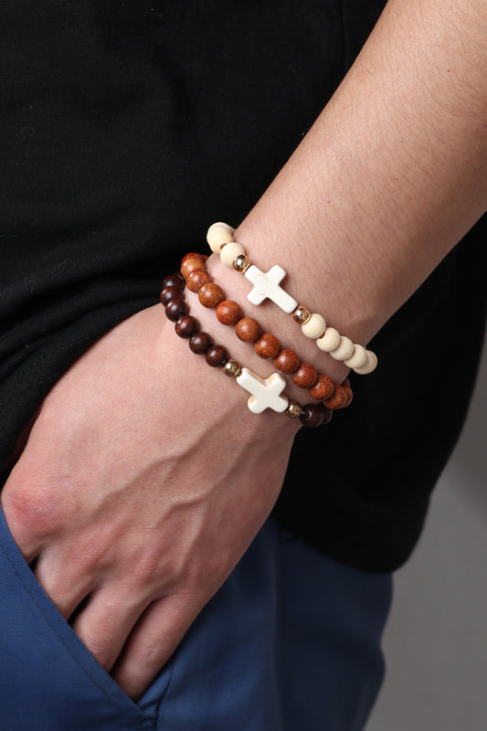 3 Piece Set Vintage Style Cross Plastic Beaded Men'S Bracelets